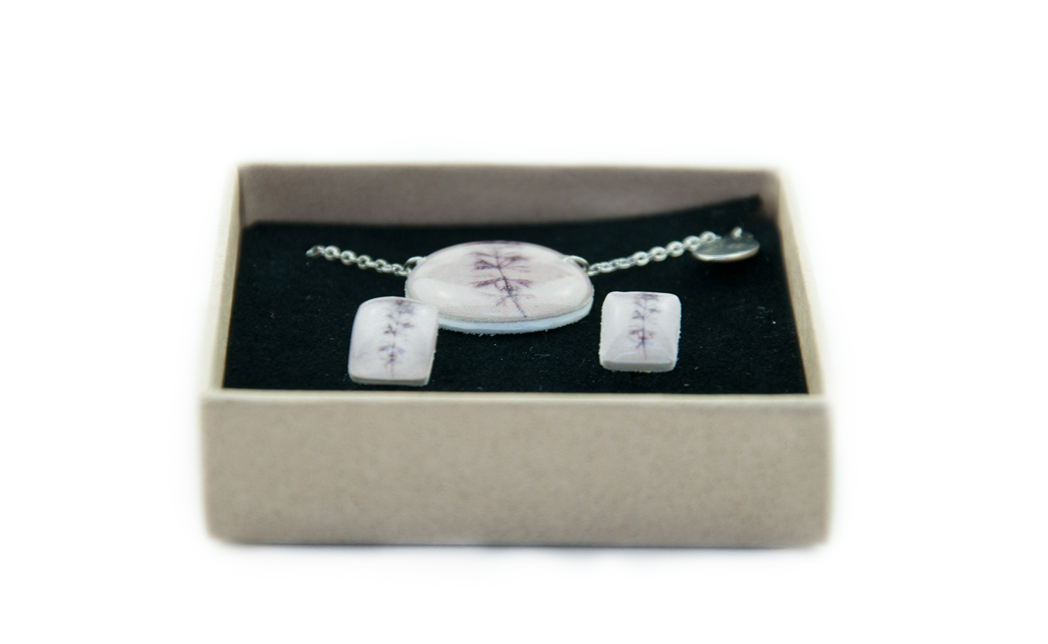 Kollektionen Arctic Plants skapades efter inspiration av det norrländska landskapet. Växterna hos smyckena har jag egenhändigt plockat, torkat, pressat och därefter fotograferat. Den mintgröna färgtonen hos en del av smyckena minner om norrskenet som lyser upp himlen i den mörka vinternatten. På vintern erinrar växterna om varma och sköna sommardagar. Min förhoppning med kollektionen är att den ska få oss att stanna upp ett ögonblick och njuta av nuet.